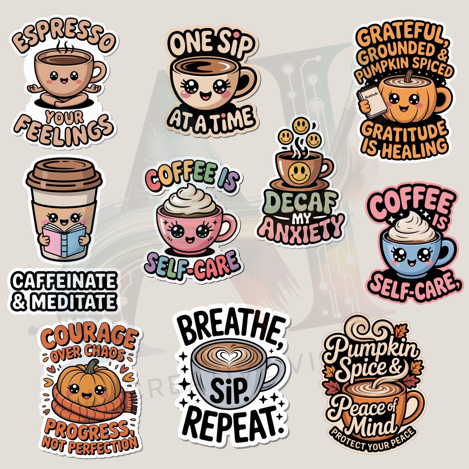☕ Fall Coffee & Cozy Vibes Inspirational Digital Sticker Files (10-Pack)