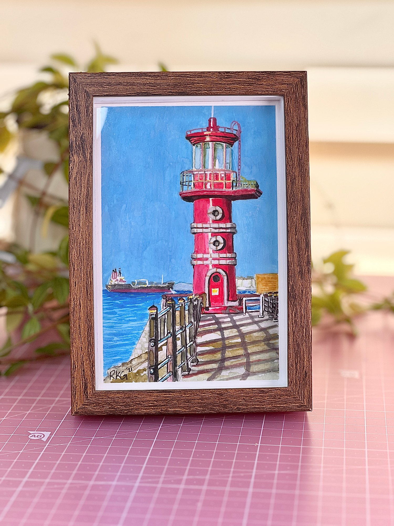 My first impression of Dangjin in Chungcheongnam Province was that it was a gray sprawl of chemical plants and factories, but on the edges of town along the coast where the air is clearer, an entirely different experience can be enjoyed. Here in these small fishing villages you can eat fresh fish while taking in the view of the West Sea (Yellow Sea). This was the first lighthouse I ever saw in Korea, and it has a lot of personality. I really enjoyed painting this lighthouse. It gave me the perfect opportunity to enjoy painting with red, one of my favorite colors. Adds a perfect punch of vividness to any space requiring a little lift. Just download and print this 4x6-inched postcard artwork today!