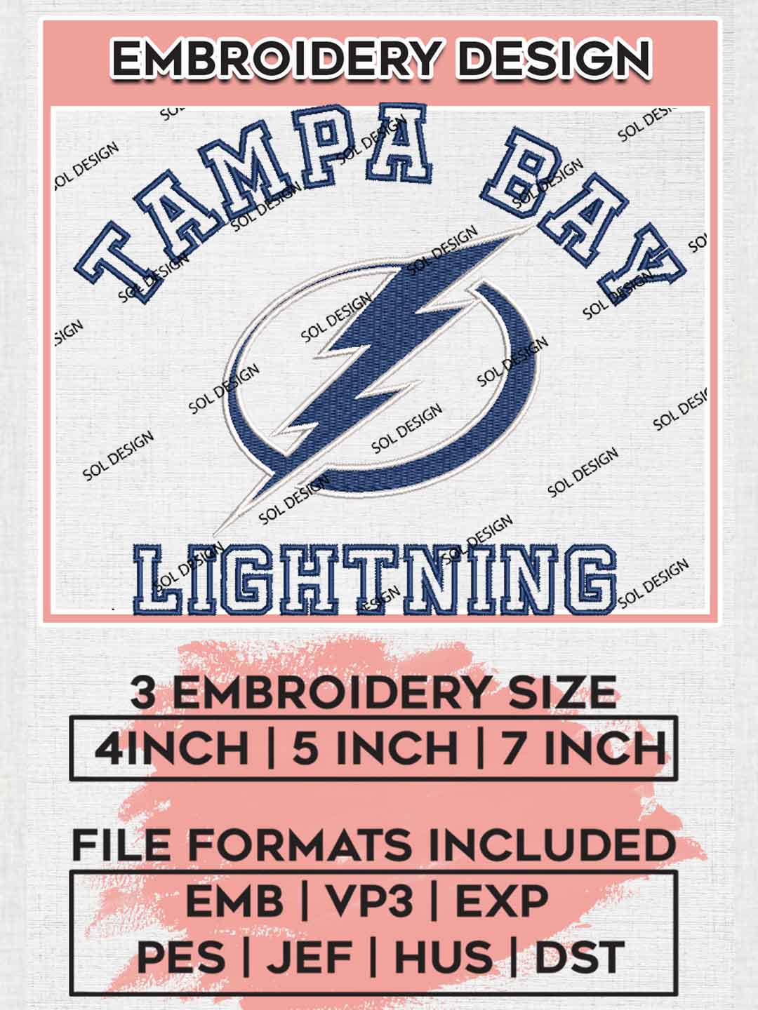 NHL Tampa Bay Lightning Team Word Mascot Logo Embroidery Designs, Tampa Bay Lightning Hockey Team Embroidery Files, NHL Lightning Team Logo Embroidery, NHL Hockey Team Machine Embroidery Design, 3 sizes, Digital Download