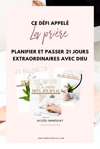 Ce défi appelé la prière est une trousse simple de suivi pour ta lecture de la Bible pour planifier et passer 21 jours extraordinaires avec Dieu