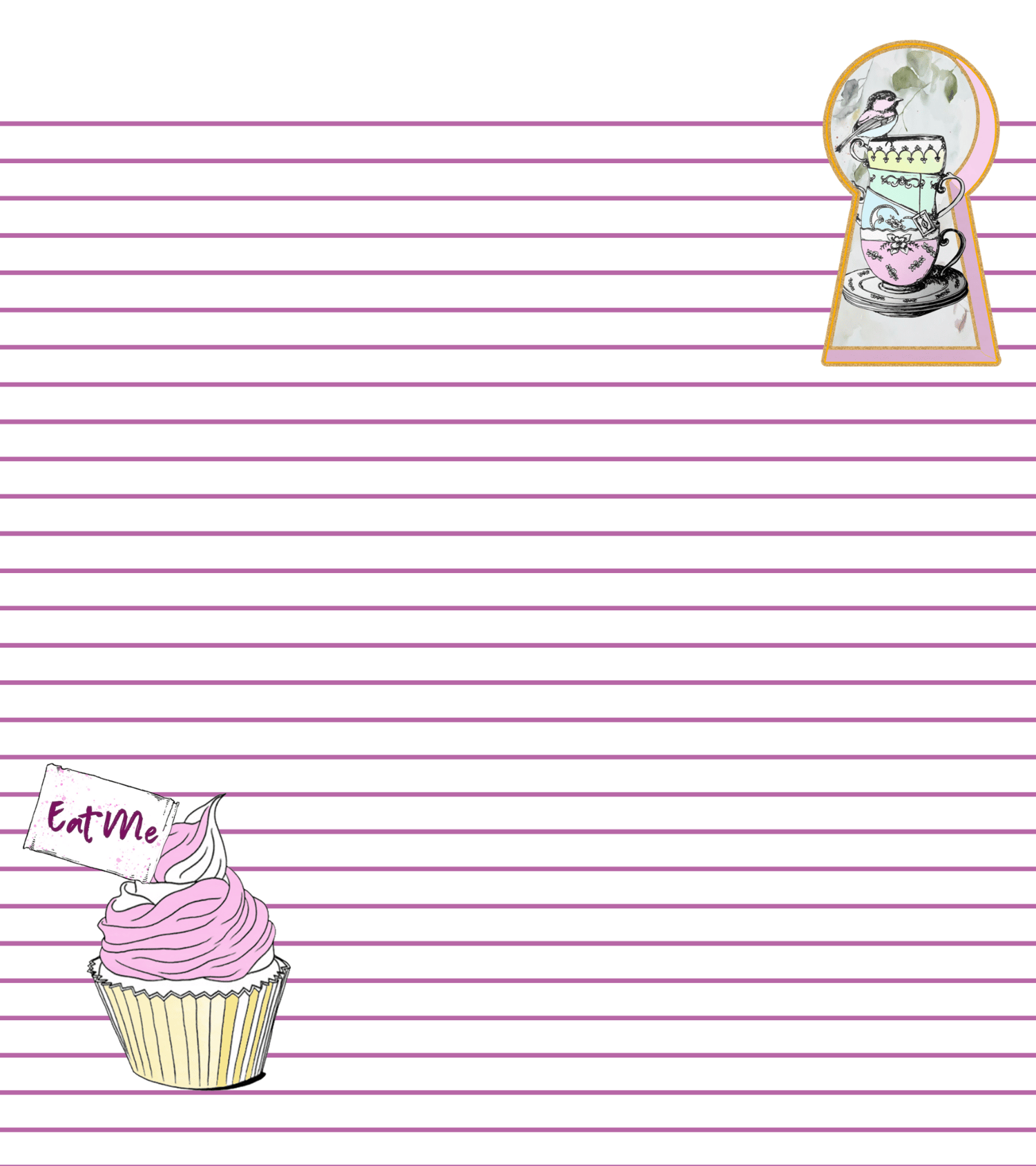 pink stationary inspired by Alice In Wonderland page 5. Goes good with Alice In Wonderland pink stickers