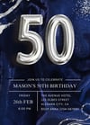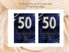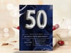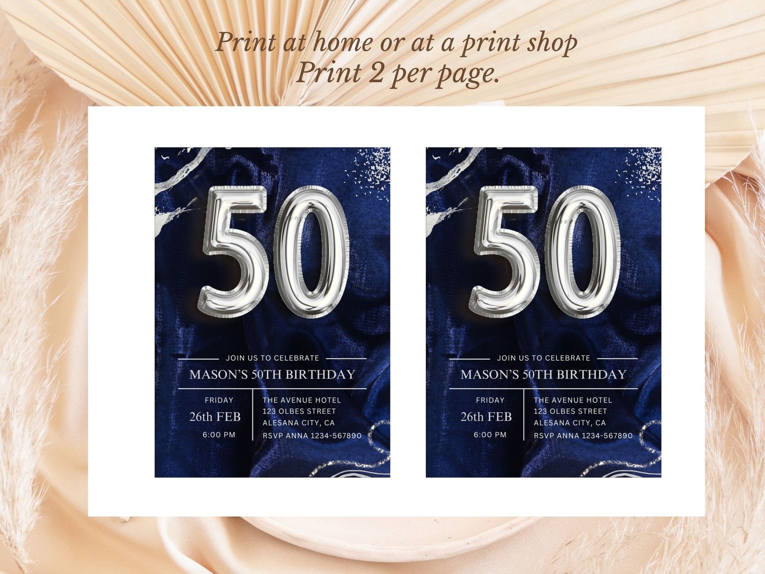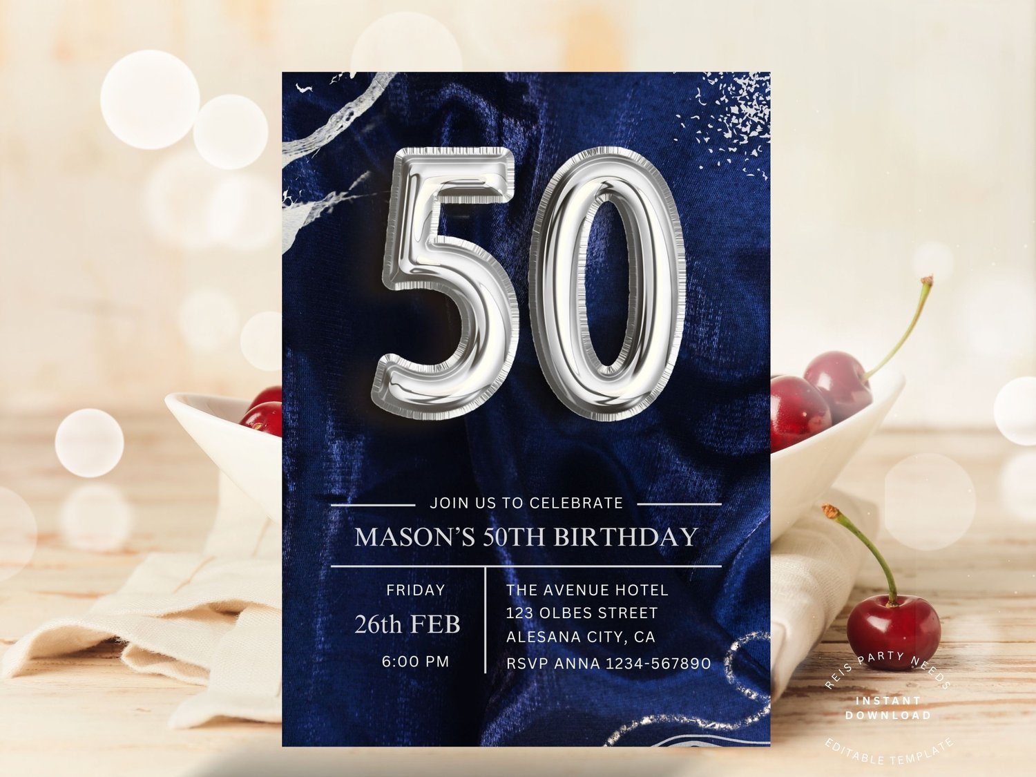 50th Birthday Invitation, Navy Blue & Silver Birthday Invitation Template For Men, Dad's birthday Card, Royal Blue Printable 50th Birthday Invite,