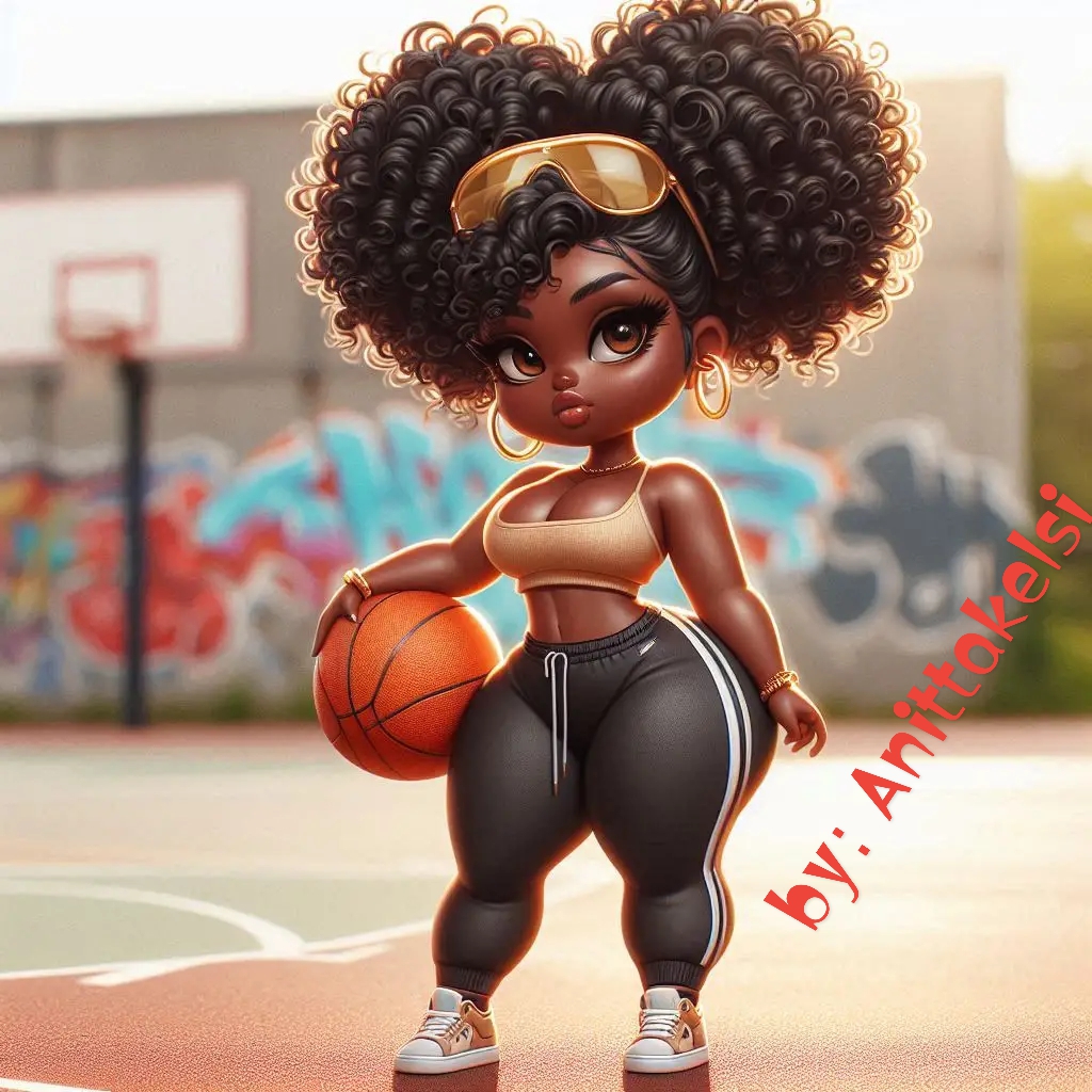 Bring the heat with Golden Glow on the Court – Melanin Moves, a chibi-style character that blends street fashion with unapologetic flair. Dressed in a radiant gold crop top, sleek black joggers, and oversized sunnies, this basketball queen commands the court with style and sass. Her voluminous curls and gold hoops amplify the drama, while the graffiti backdrop adds urban edge. Perfect for themed collections celebrating melanin beauty, body positivity, and fashion-forward storytelling, this piece is a slam dunk for creators who love bold aesthetics and empowering vibes.
