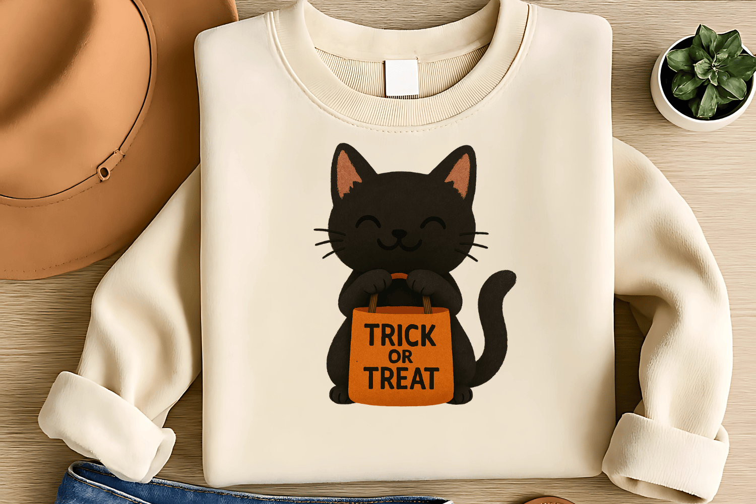 Trick or Treat Black Cat Sublimation PNG – Cute Clipart for T-Shirts – Fun Halloween Theme – 300 DPI Instant Digital Download