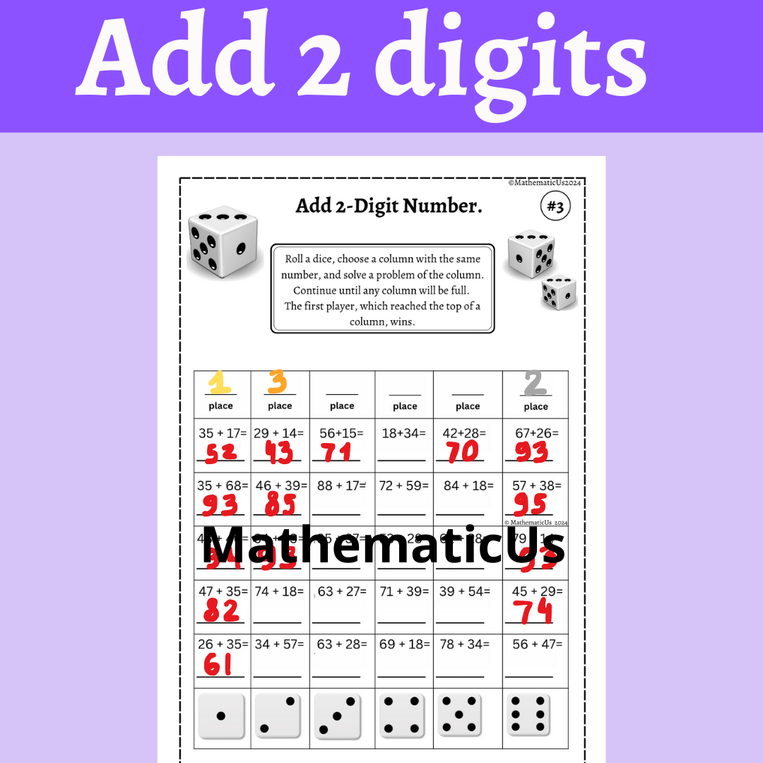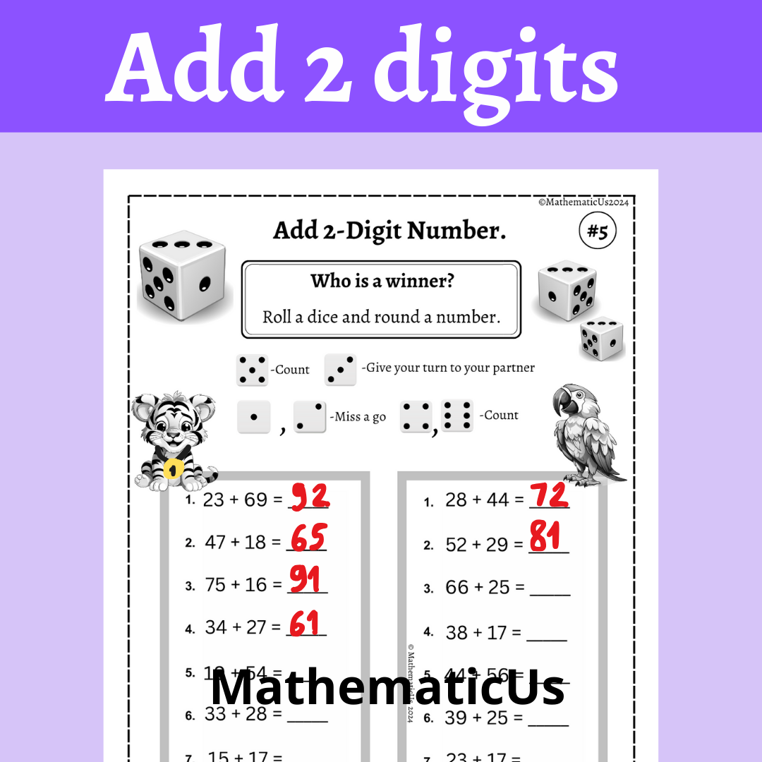 This reusable resource includes 6 maths dice games. It was created to engage students in practicing to Add 2 digits. Students will get lots of fun playing the Dice Games.