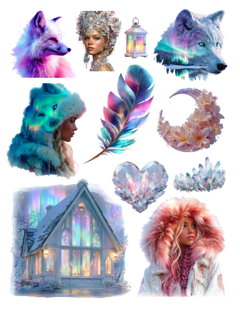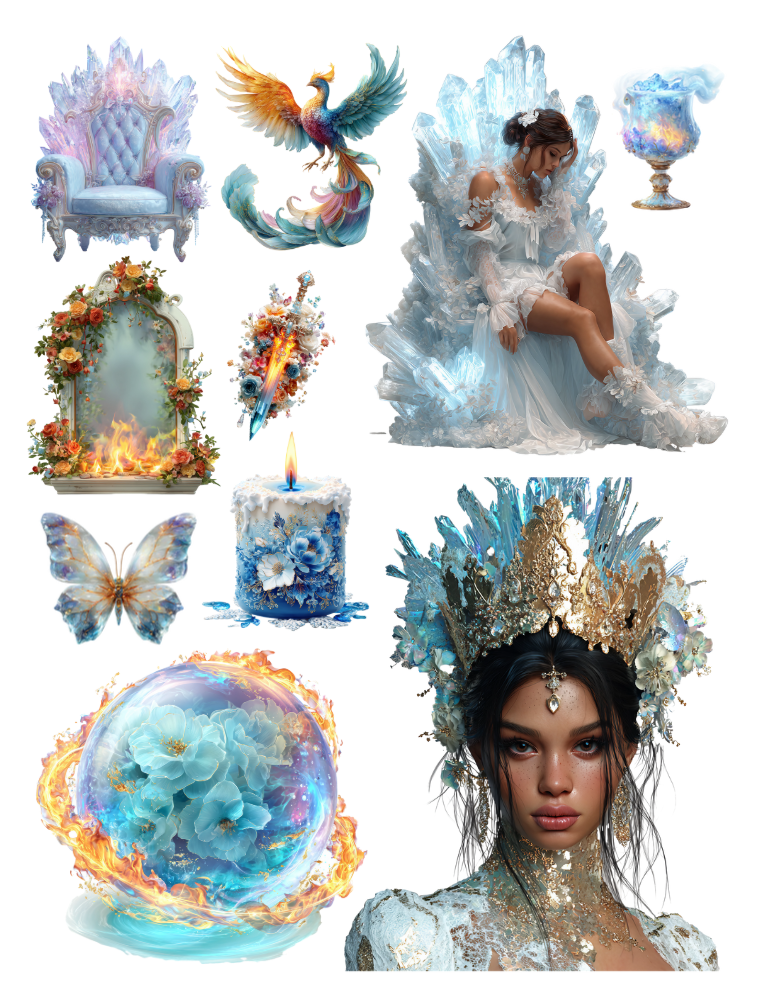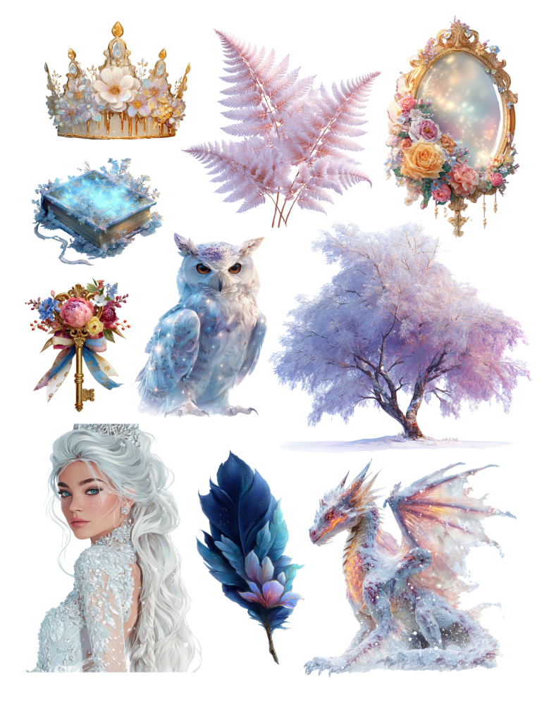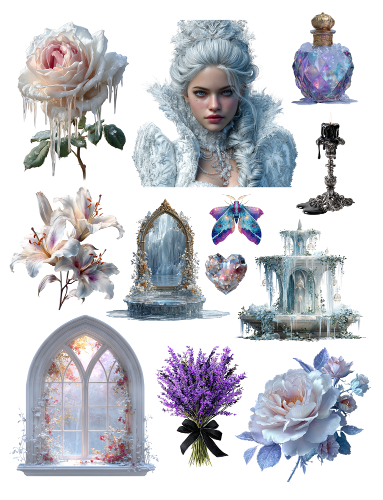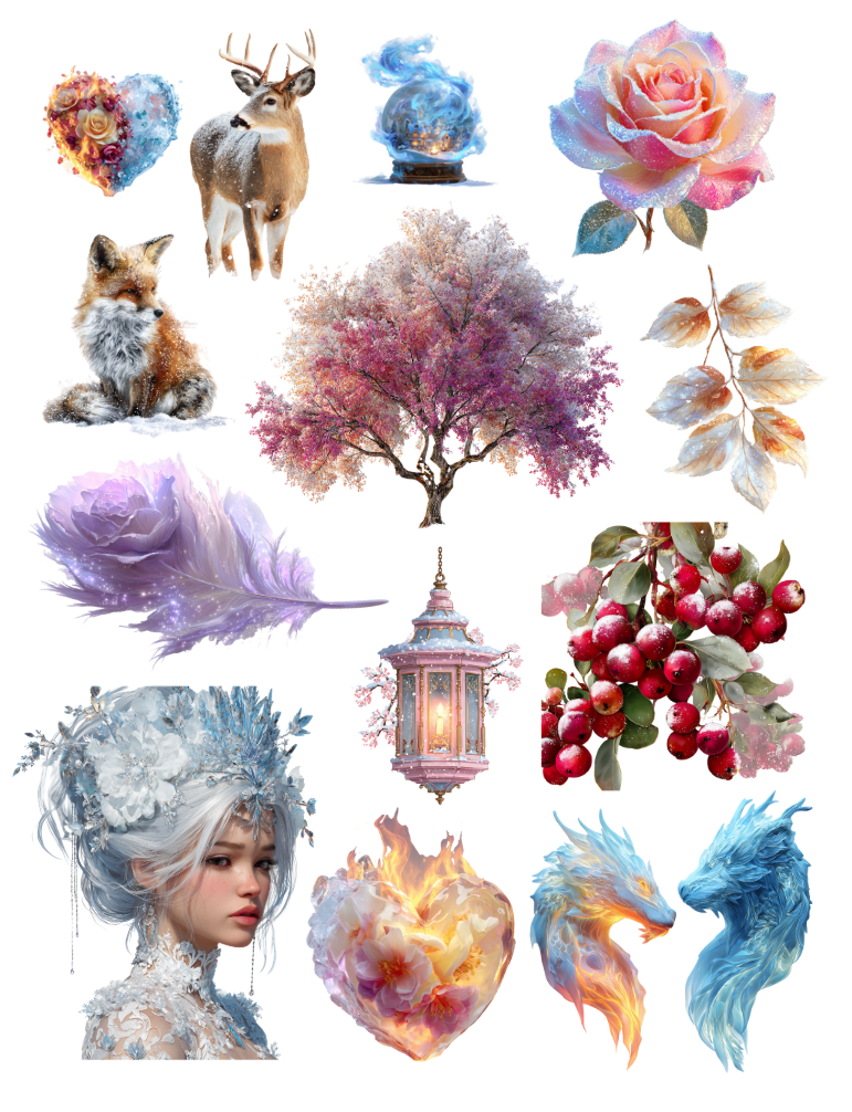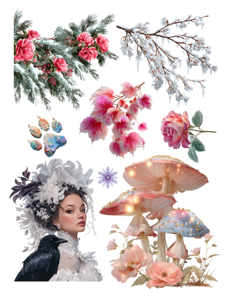 Pull out your scissors and glue and dive into the magical world of winter ephemera with fire and ice, frosted forest, icy florals, frost and flame and gothic winter garden ephemera elements.