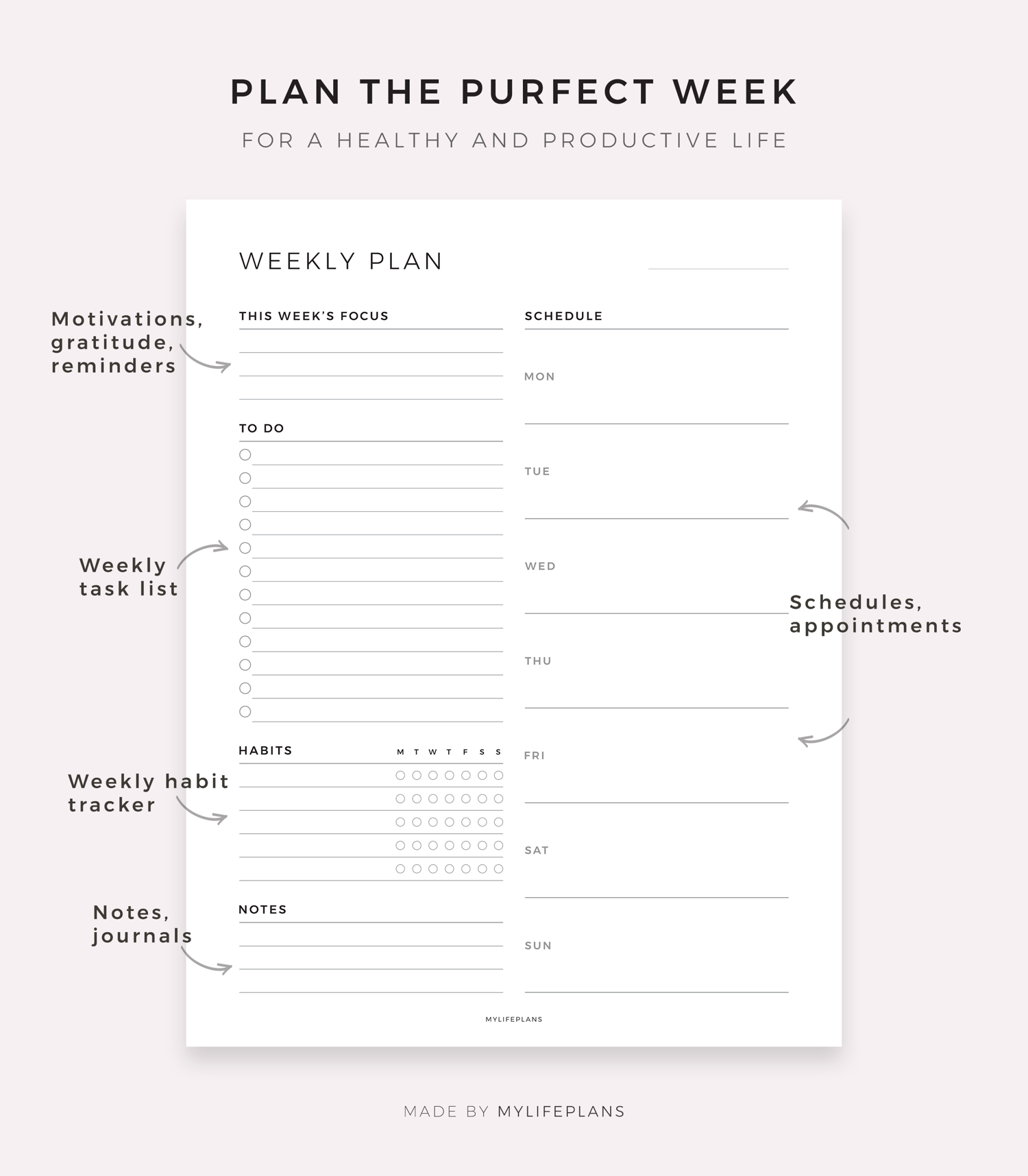 Undated Weekly Planner Digital, Compatible with Goodnotes, Notability, Ipad