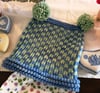 Allow additional yarn for decorations. Sample made with Malbrigo Chunky in Surf Blue and Water Green.