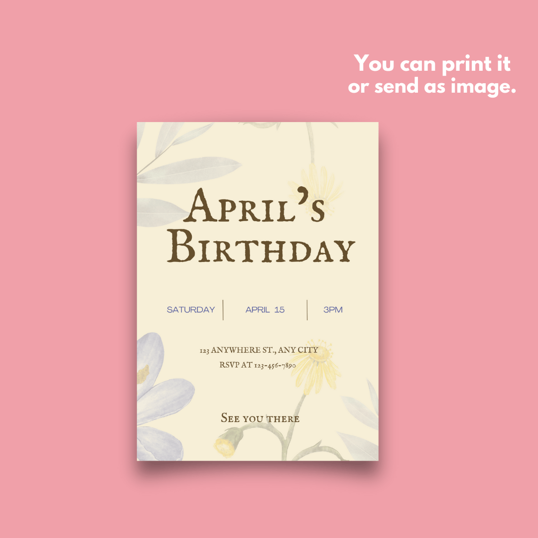 Perfect for anyone who wants to gather their friends and family in a charming and inviting way, this Canva template is ideal for spring-themed celebrations. Whether you're planning a garden party or a cozy get-together, this invitation adds a delicate artistic touch that makes every guest feel welcome.