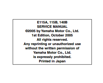 2005 Yamaha E115A 115B 140B Boat Motor Service Manual Part No. 61U-28197-5H-11