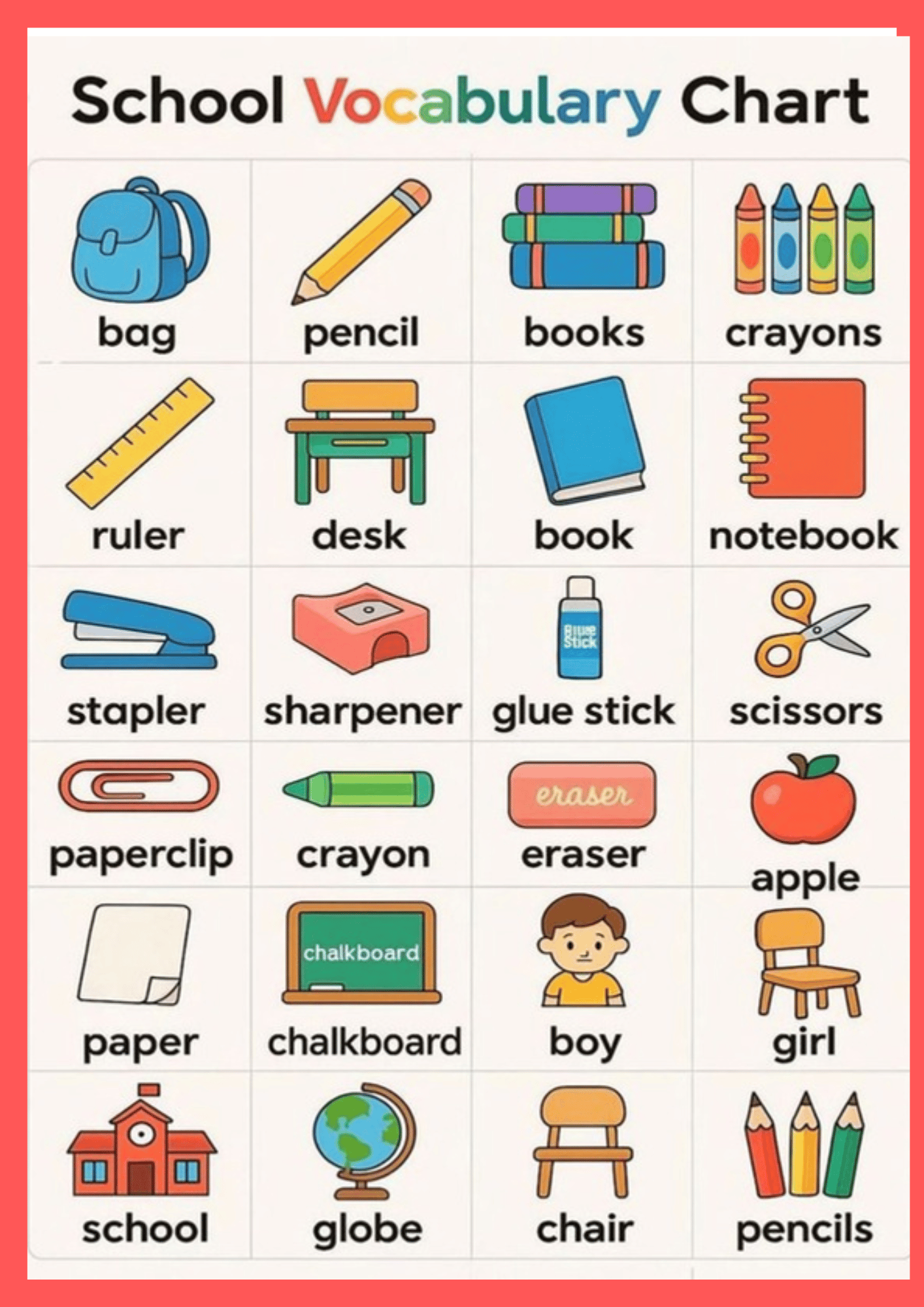 This is regarding school vocabulary chart
