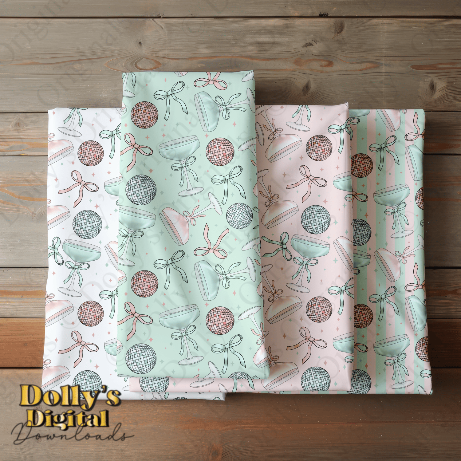 Instant digital download of our Pink and Mint Cocktail Seamless Patterns (4 PNG’s)