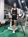 There, she worked up a sweat, doing muscle training and endurance exercises.
