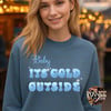 This cozy “Baby It’s Cold Outside” design features playful bubble letters with frosty accents — perfect for sweatshirts, tees, and winter mugs.