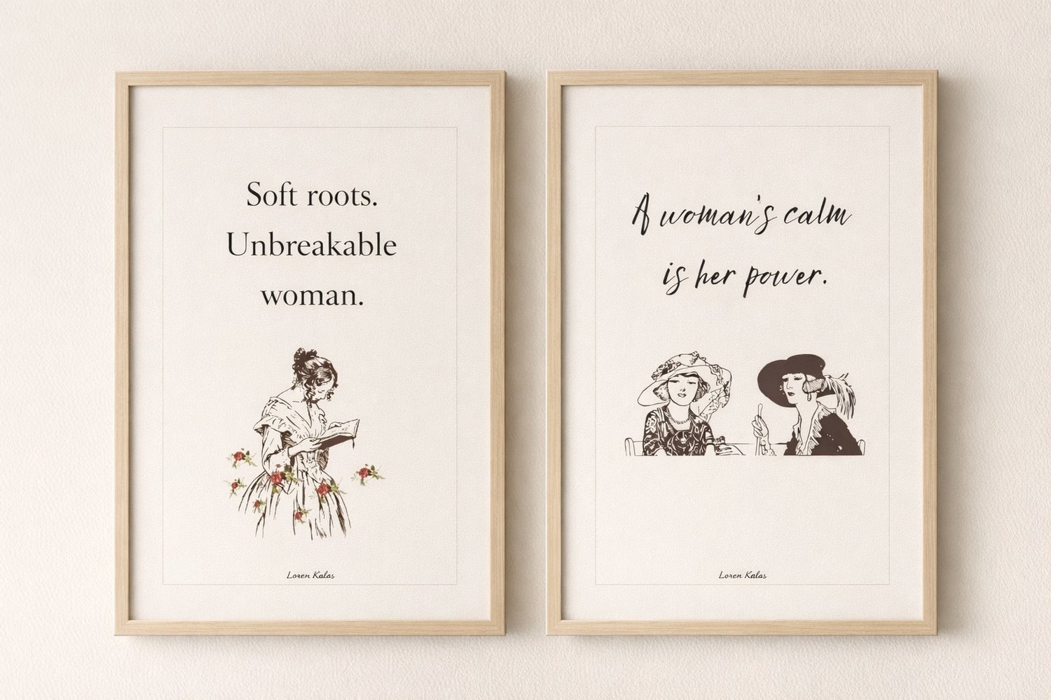 Soft Roots & Quiet Power — A3 Feminist Quote Wall Art Set (2 Prints) Minimal Aesthetic Feminine Decor | by Loren Kalas