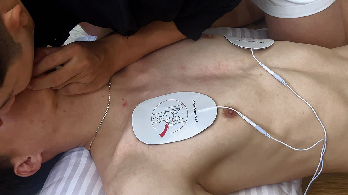 From the shadows, his mischievous friend TíngHuī strikes with a towel, meant as nothing more than a prank. The joke turns wrong when GōngLun collapses, his breath fading and heartbeat vanishing. Realizing he's gone too far, TíngHuī leaps into action — stripping away the fun and launching into an attempt at CPR and AED shocks, fighting to snatch his friend back.