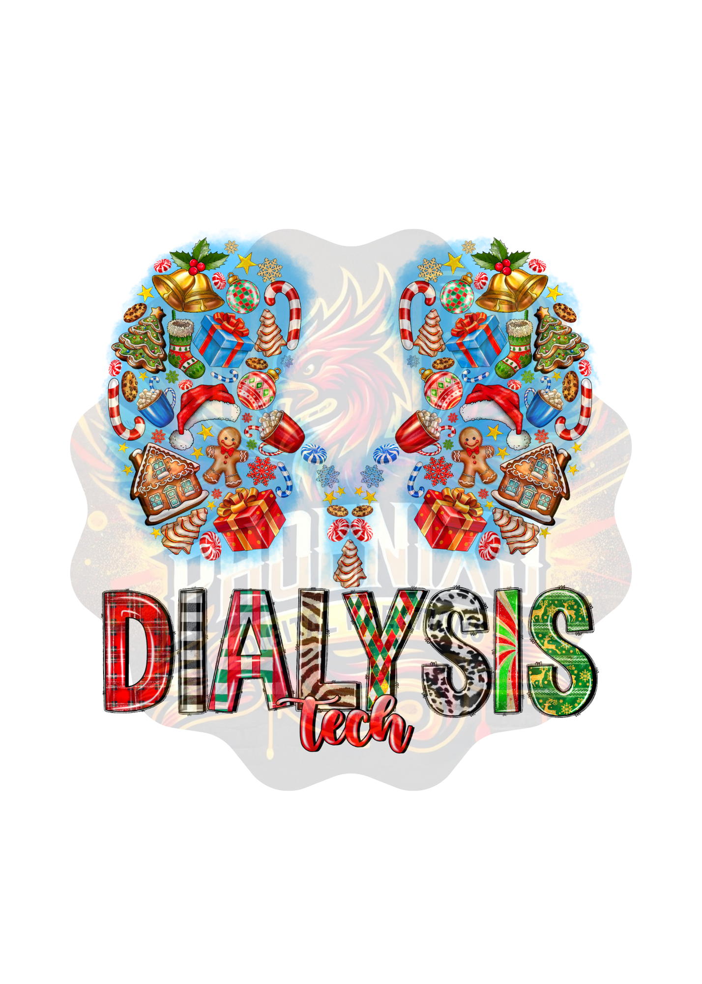 Celebrate the holidays with our festive "Dialysis Tech" design! Featuring a vibrant kidney-shaped collage of holiday icons like gingerbread, candy canes, presents, and more, this cheerful artwork is perfect for dialysis techs who bring joy and care year-round. Add this colorful design to apparel, mugs, or decorations to showcase your holiday spirit and professional pride. A perfect gift or personal treat for the season!
