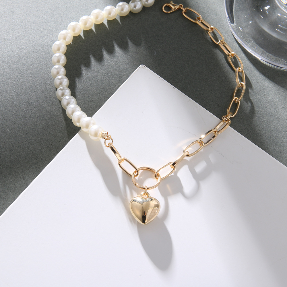 Necklace heart-shaped pearl collarbone necklace women's necklace.