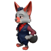 - An anthropomorphic fox character in business attire