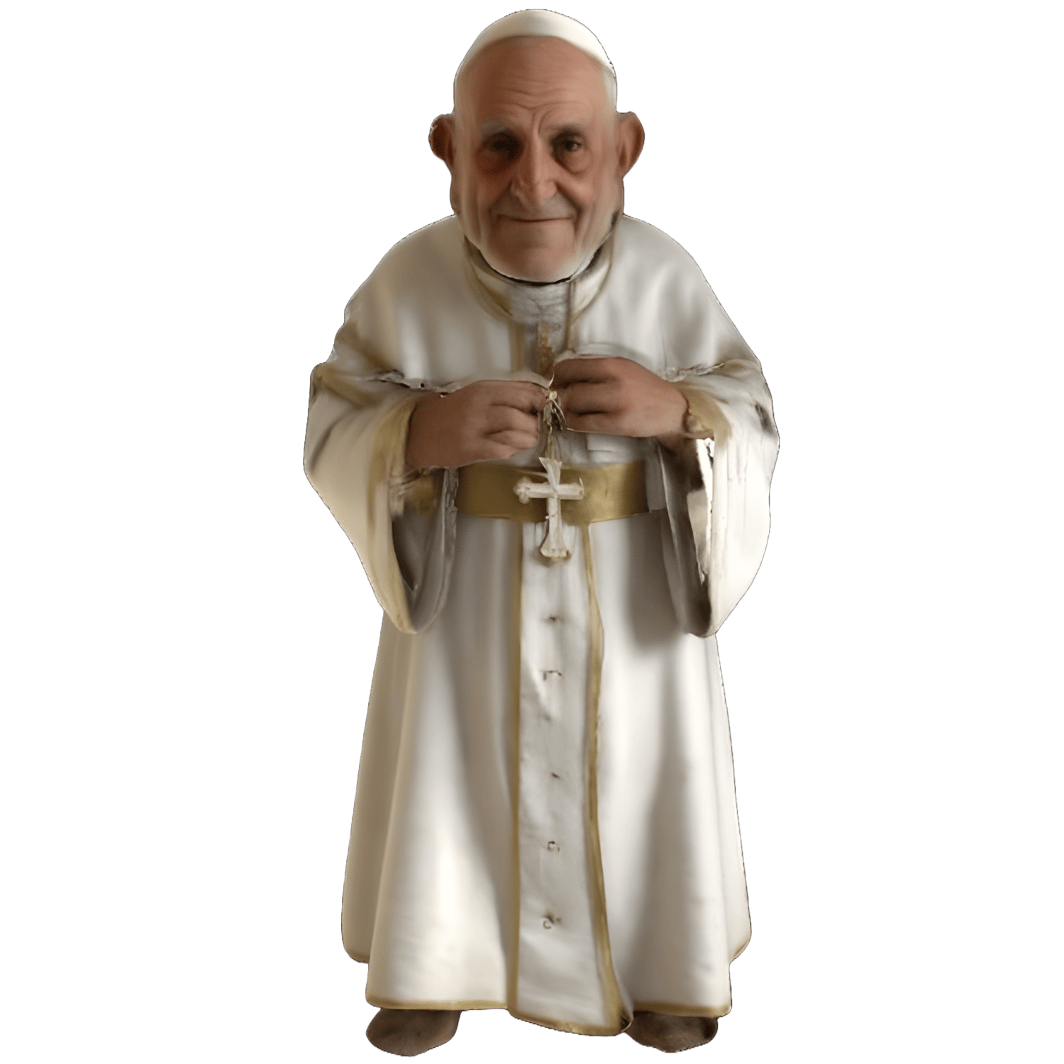 - A religious figure in white robes and traditional papal attire