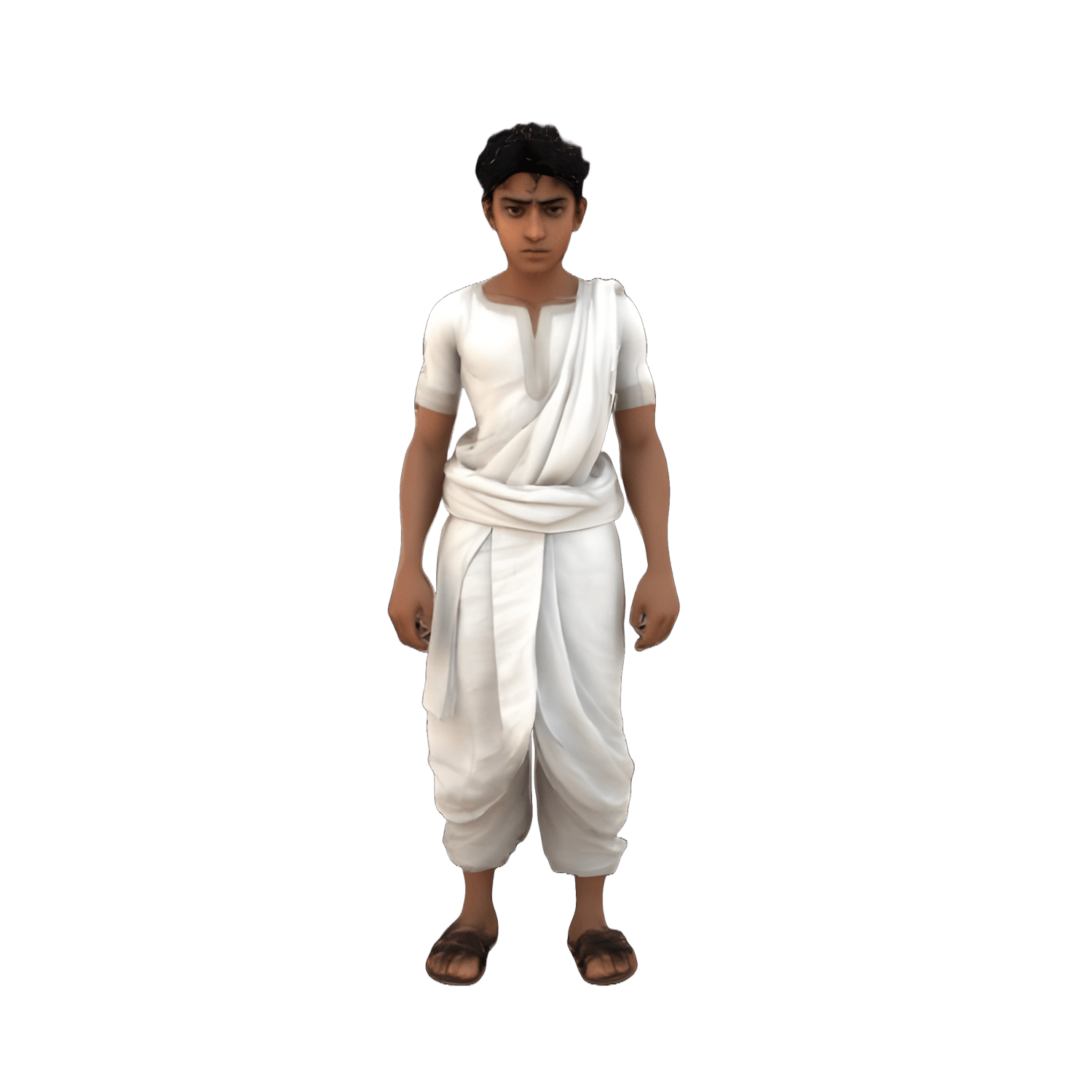 - A young person in traditional Indian/South Asian white dhoti attire