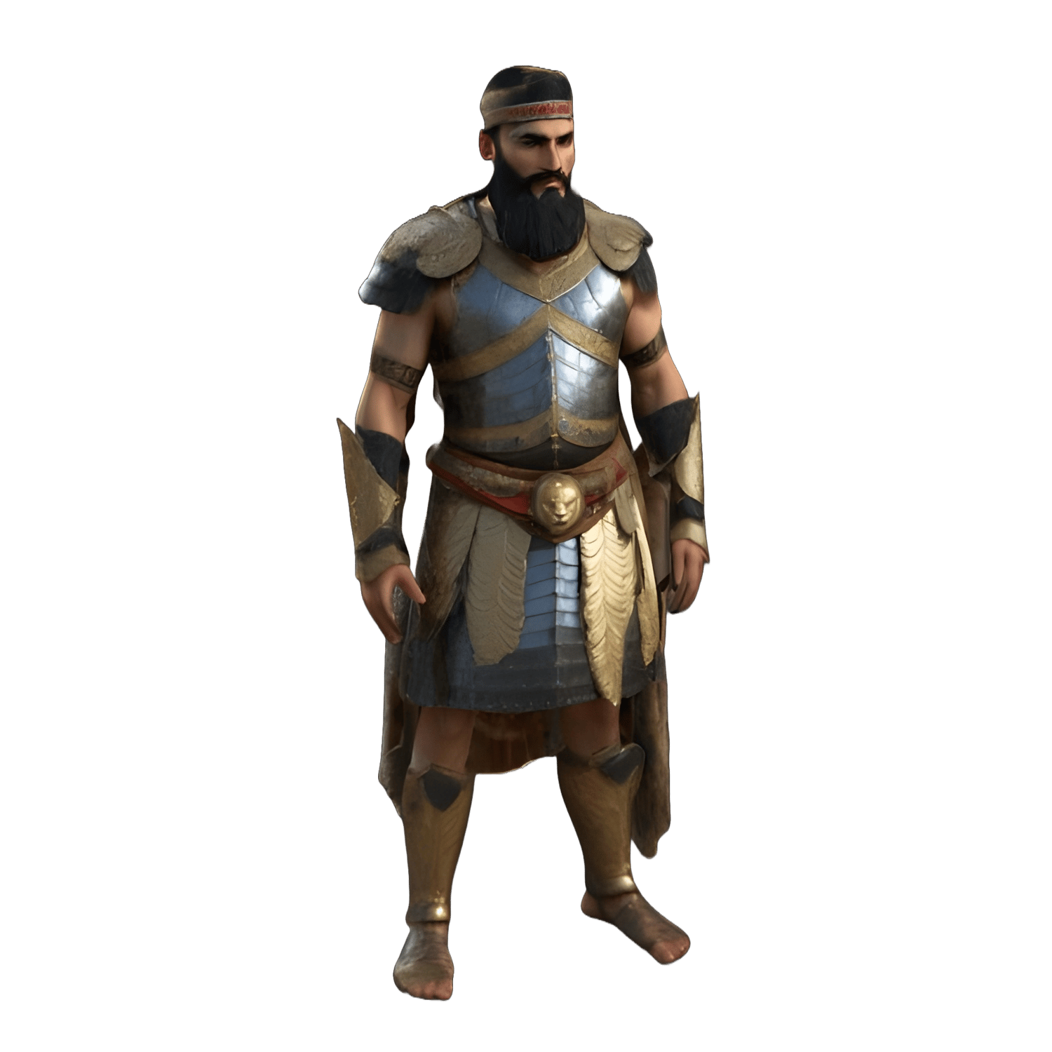- A medieval/fantasy warrior in armor with middle-eastern influence