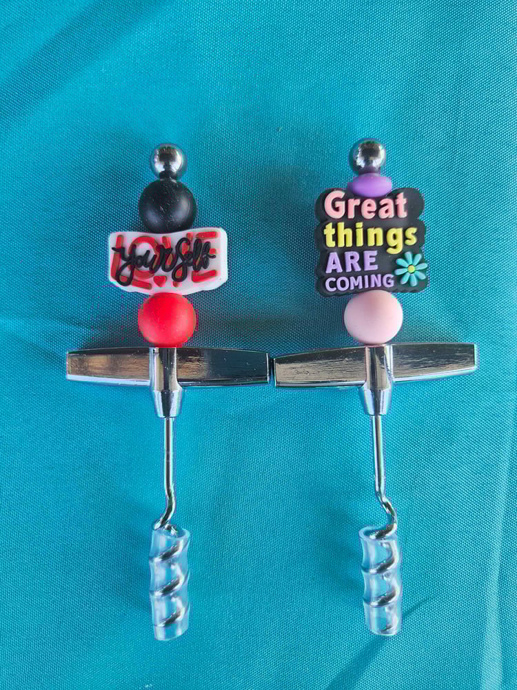 Hand-decorated focal & silicone bead Corkscrew! Easily to clean, bright colors so its easy to find, and quite practical too!
