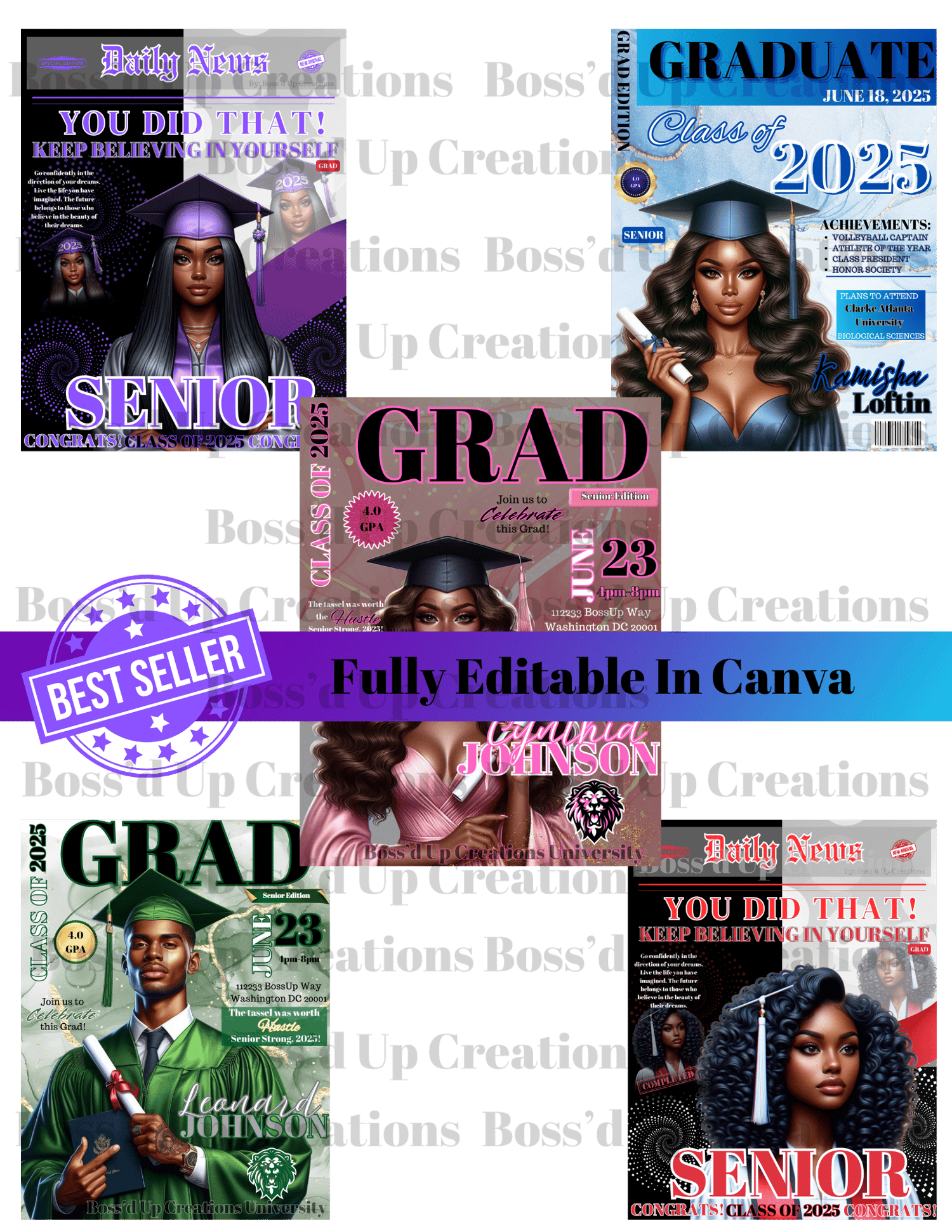 Get your Grad 2025 Magazine Template Bundle today and make graduation unforgettable!
