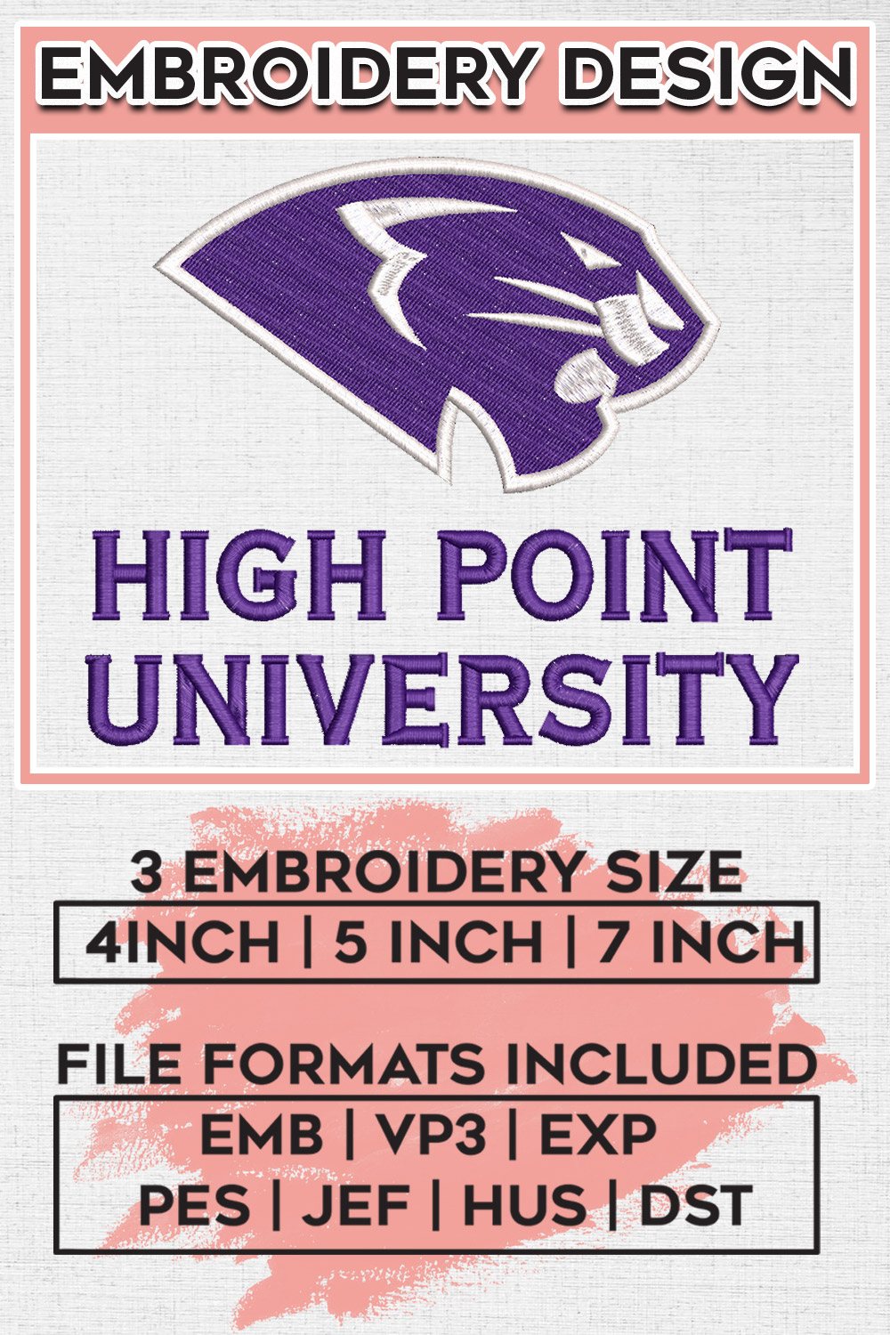 NCAA High Point Football Team Wordmark Logo Embroidery Files, NCAA High Point Panthers Team Embroidery, NCAA College Football Teams, High Point Team Emroidery, 3 sizes, Machine embroidery designs, Digital Down