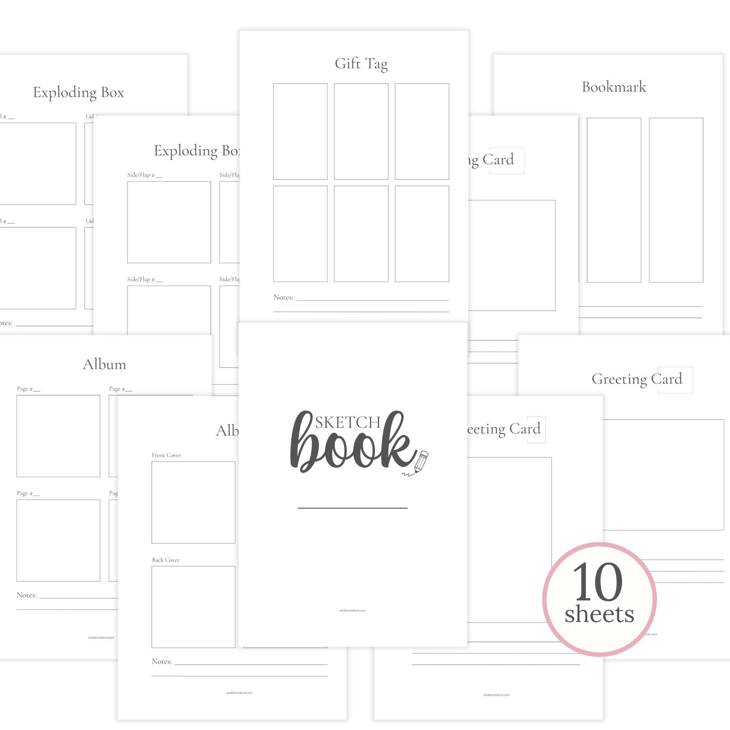 This simple sketchbook is designed to help you plan and organize your paper crafting projects. Whether you love card making, exploding boxes, bookmarks, albums, or gift tags, these pages give you space to sketch ideas, note materials, and keep track of your creative plans.