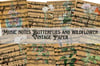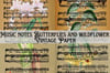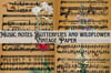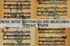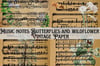 Music notes Butterflies and wildflower Vintage Paper, Music notes Butterfly and wildflower, Digital Paper.