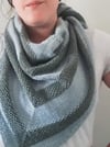 The triangular Denim Chill Shawl combines clean lines and earthy textures to give you the perfect stand-alone or layering accessory for whatever the day holds. Alternating stockinette stitch and seed stitch stripes between two different colors creates a subtle stitching effect resembling stitches on denim garments.