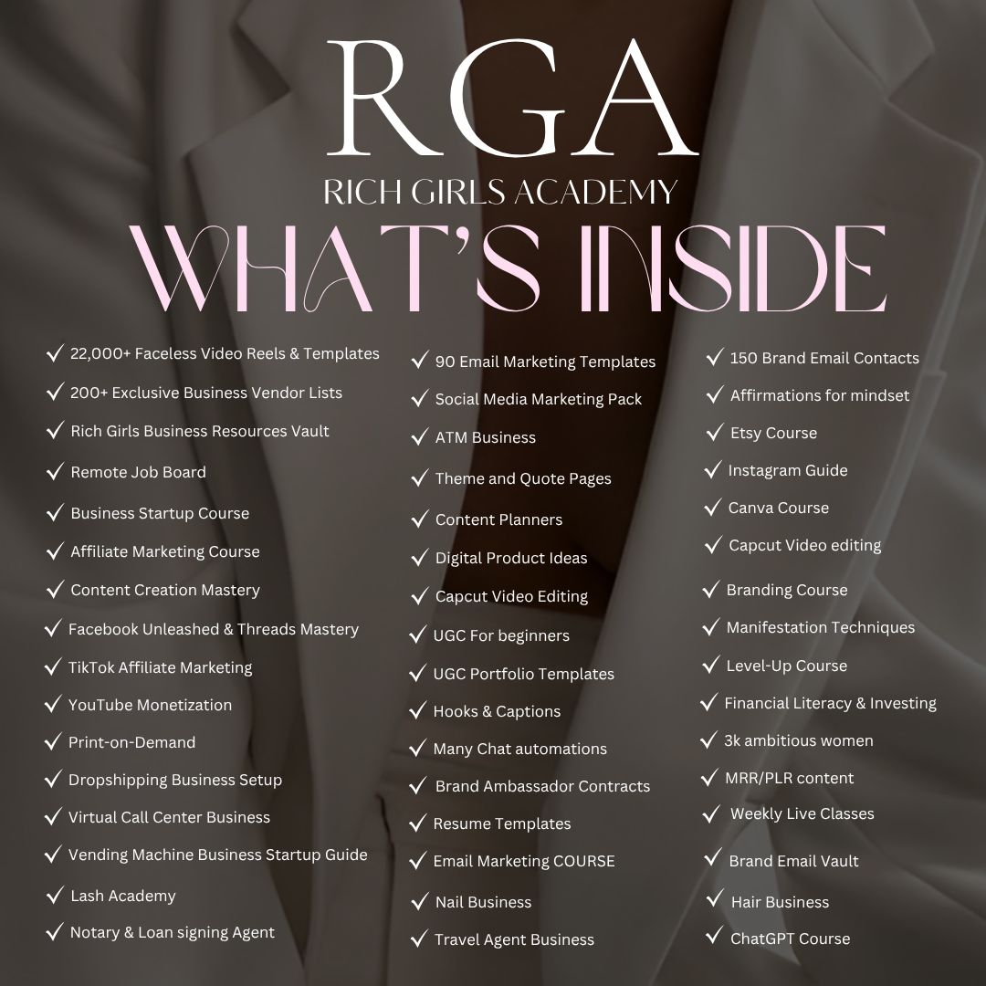 ✅ Rich Girls Business Resource Vault – Packed with everything you need to start & grow