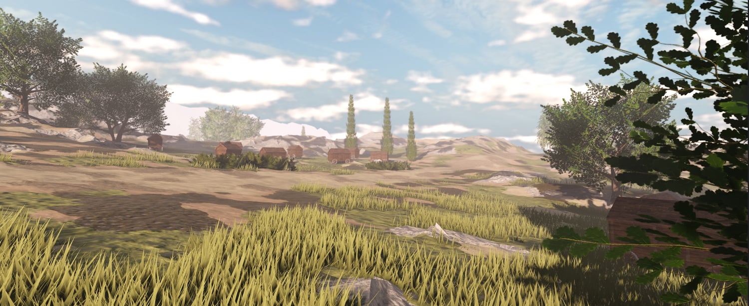 Hilltop views, and rural structures placed throughout to encourage exploration and storytelling.