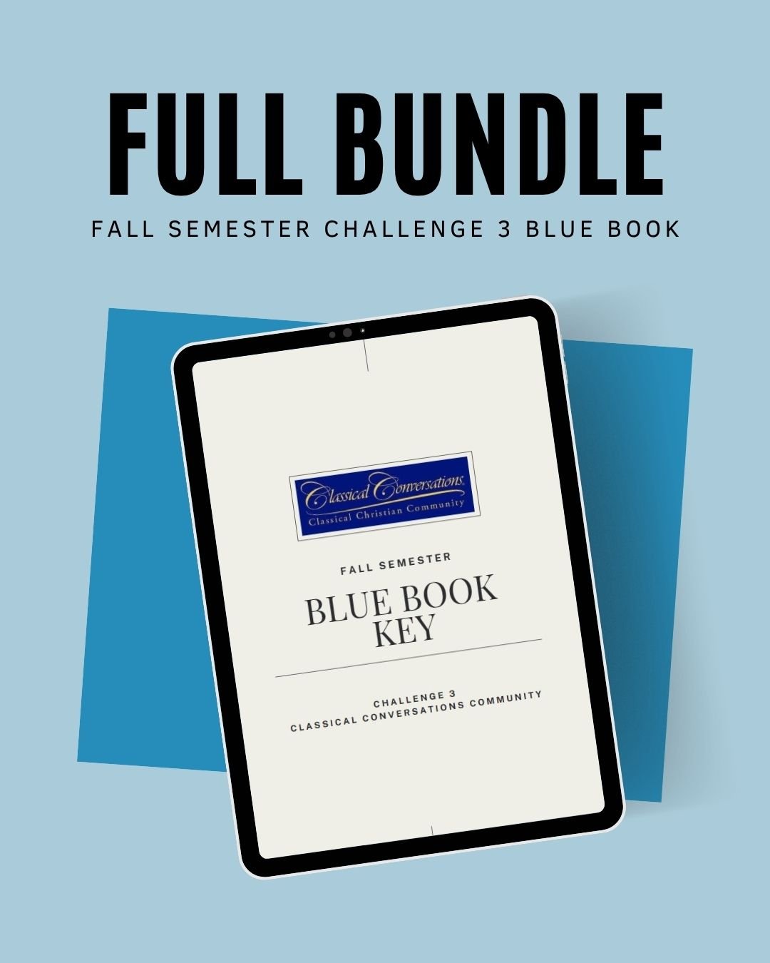 The Blue Book Celebration Fall Bundle is an essential companion that provides parents and tutors with both the full Blue Book Guide, and the Blue Book Answer Key- it includes detailed assessments, content explanations, and reflection prompts aligned with the Challenge 3 curriculum. It offers practical guidance on evaluating student progress across core subjects, analyzing work samples, and conducting meaningful self-assessments. Designed to streamline the review process, the key highlights critical thinking questions, content summaries, and suggested discussion points, making it easier to celebrate student achievements and identify areas for growth....not just checking for 'right answers'!