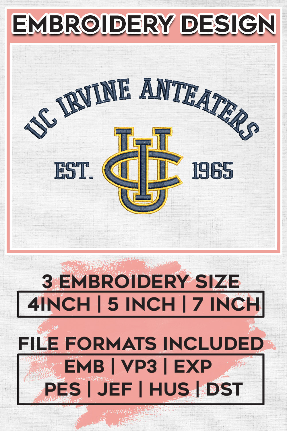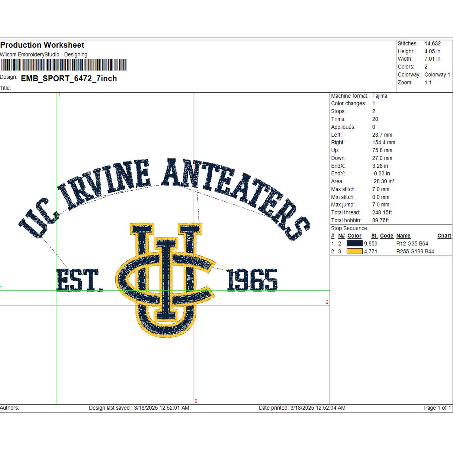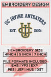 UC Irvine Anteaters NCAA Est Logo Embroidery Files, NCAA UC Irvine Anteaters Football Team Embroidery, NCAA Teams, Game Days, Machine embroidery designs, Digital Download