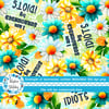 I Am Surrounded By Idiots, with yellow and blue daisy flowers.
