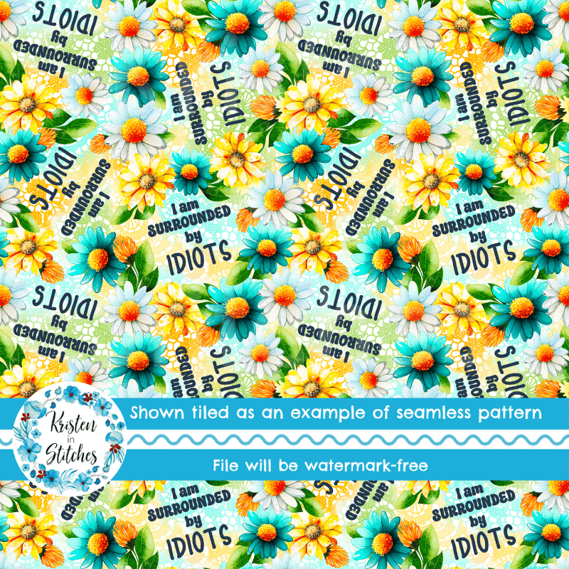 I Am Surrounded by Idiots Sarcastic Floral Seamless Pattern