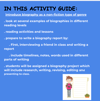 It includes videos, anchor charts, reading activities (individual and with partner), group activities, as well as a section for writing a biography report. Also included are templates for report as well as note taking and sketching pages for report. Students can use keyword list when writing their biography report.