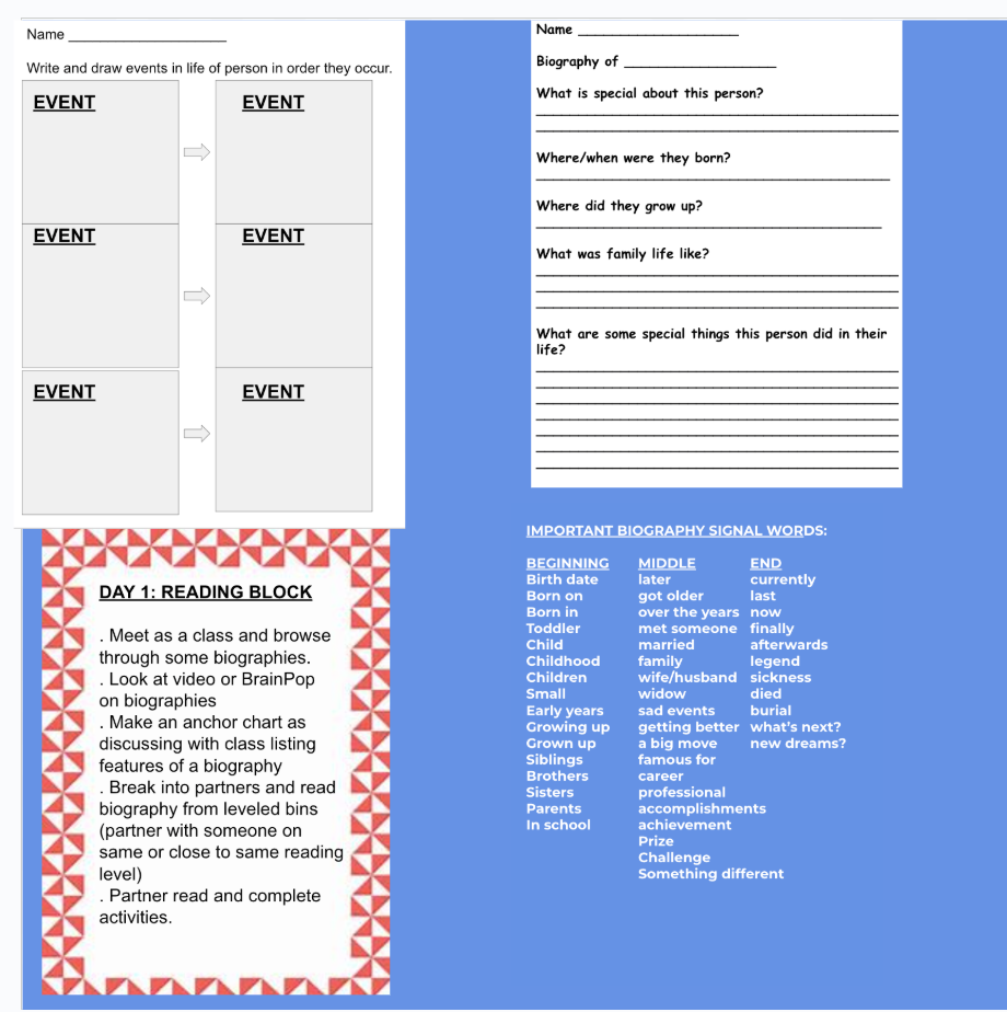 BIOGRAPHY: UNIT OF STUDY: READING & WRITING