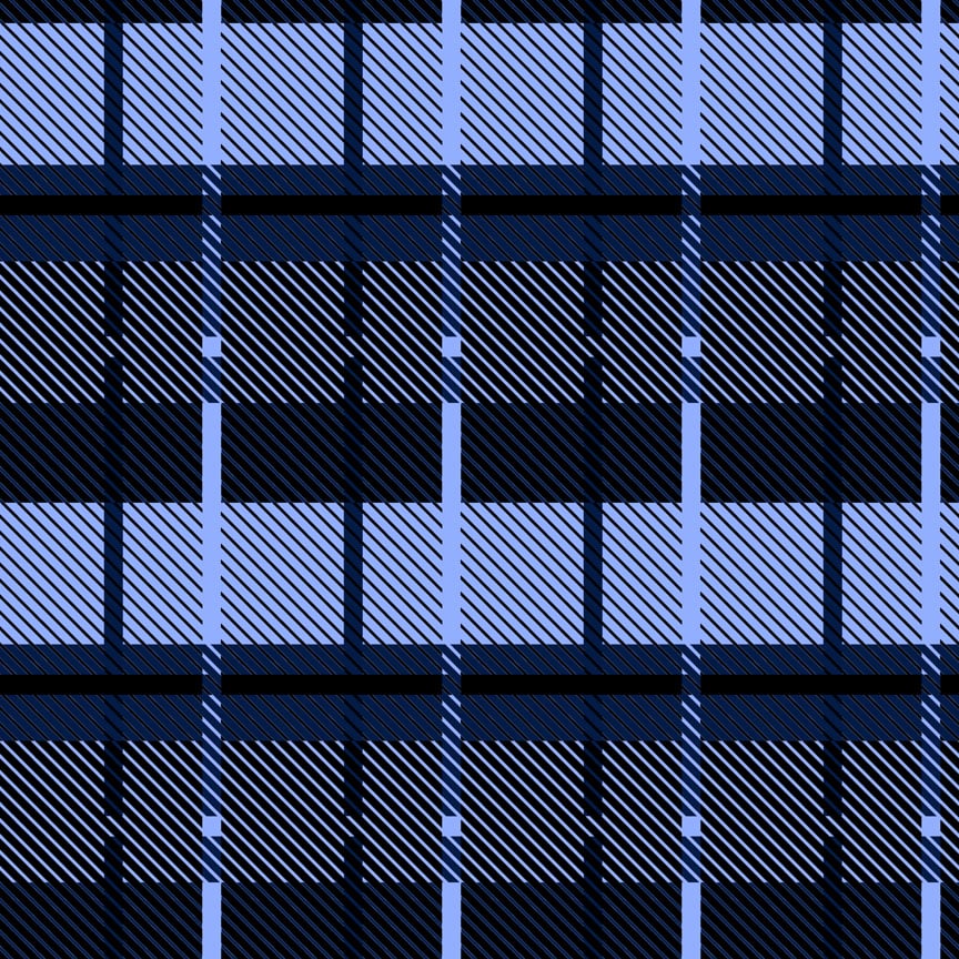Plaid-like grid with alternating blue & black squares and dynamic diagonal lines