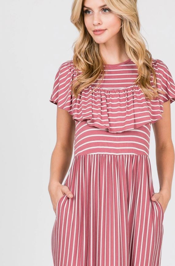 Floral Embroidered Jacquard Dress - Mauve / $23.99