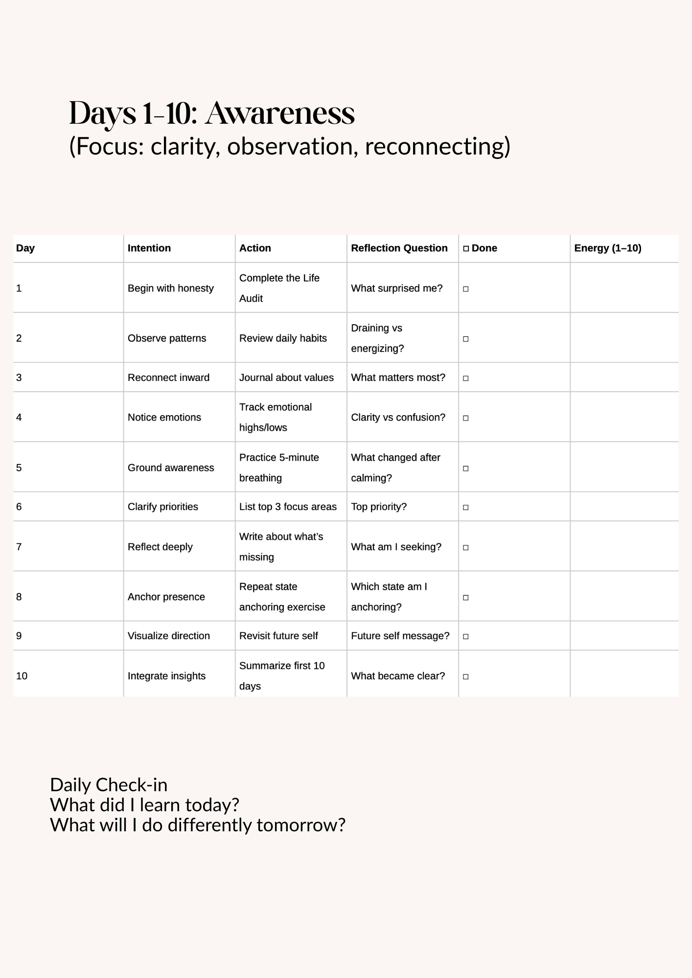 This 30-day workbook is designed to guide you step by step — from confusion to clarity, and from clarity to aligned action.