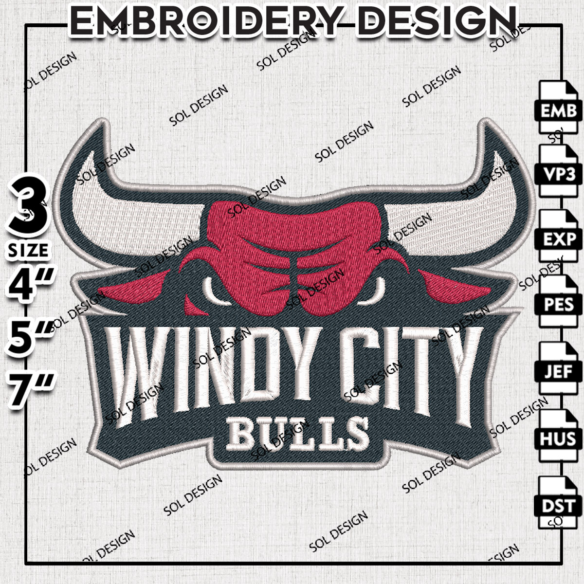 NBA G League Windy City Bulls Team Logo Embroidery Designs, NBA G League Windy City Bulls Logo Machine Embroidery Files, NBA G League Basketball Team Logo embroidery designs, NBA G League Windy City, Digital Download