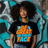 Our "BE Great In Their Face?" tee is more than a statement—it's a whole mindset. Designed for the unapologetically ambitious, this shirt is for those who rise, shine, and succeed loudly—especially when the haters are watching. This isn’t just fashion. It’s motivation in motion.