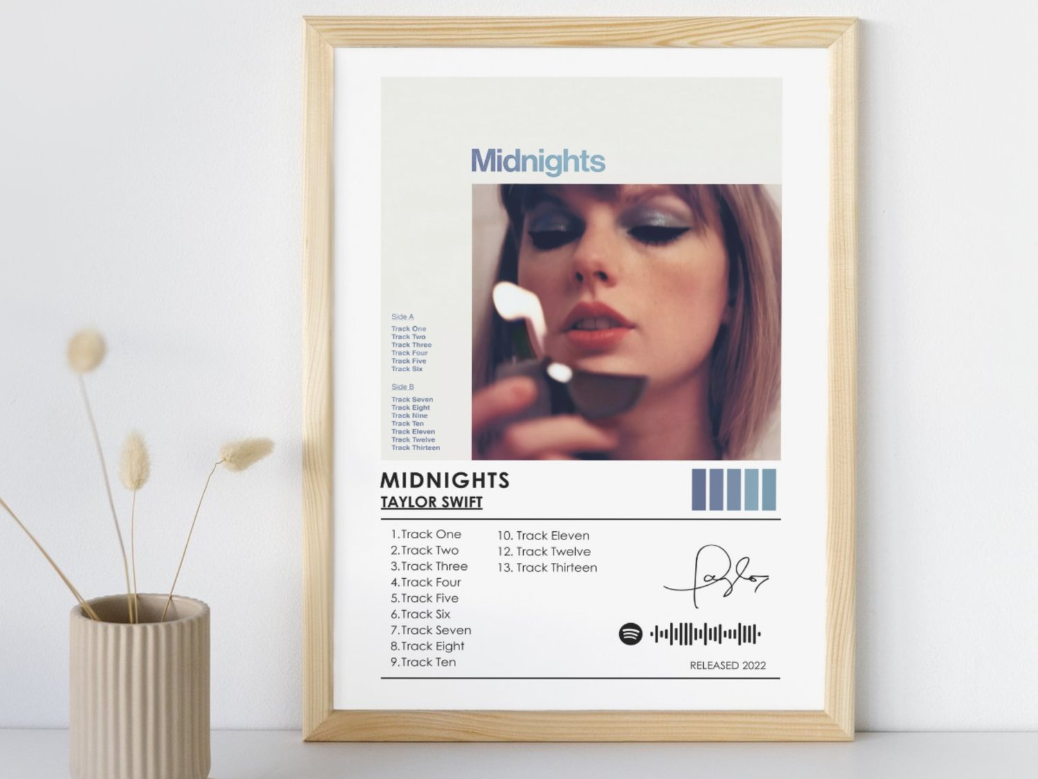 Bring the dreamy, introspective vibe of Taylor Swift into your home with this Midnights album cover poster.