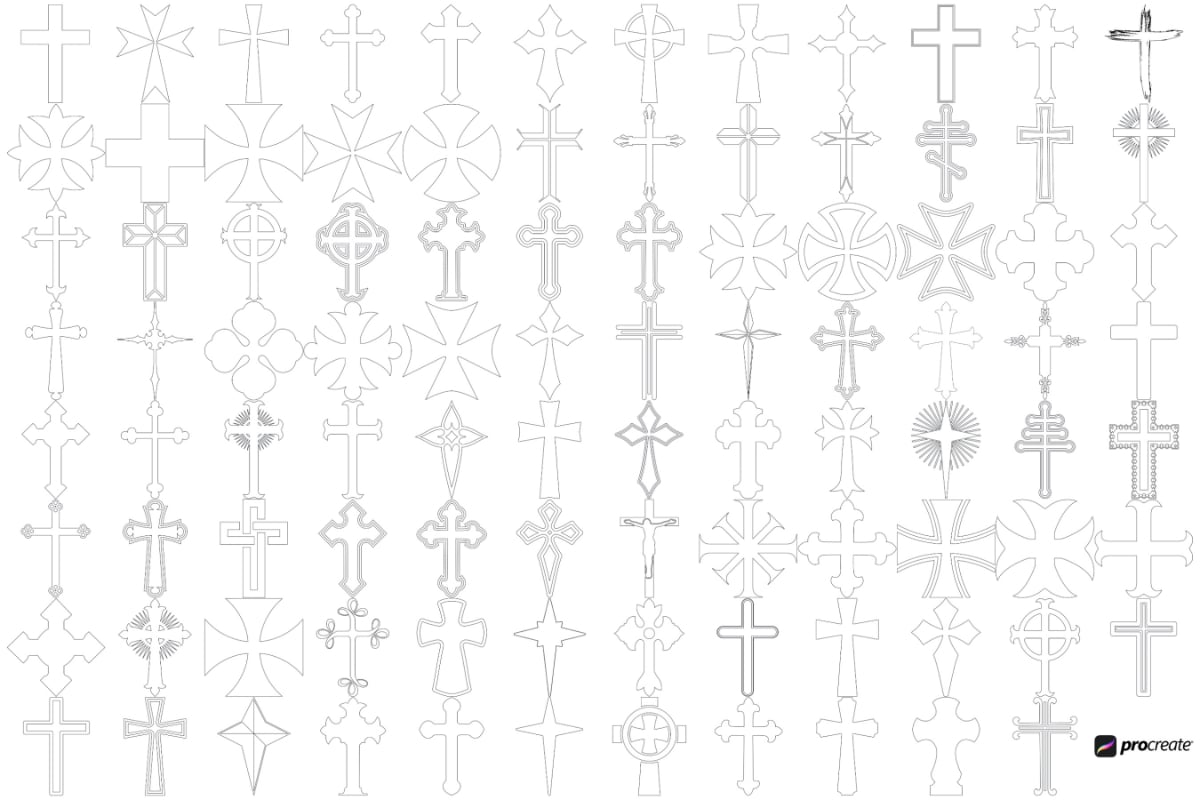 Crosses Set 1 Procreate Brush Stamps, 95 Cross