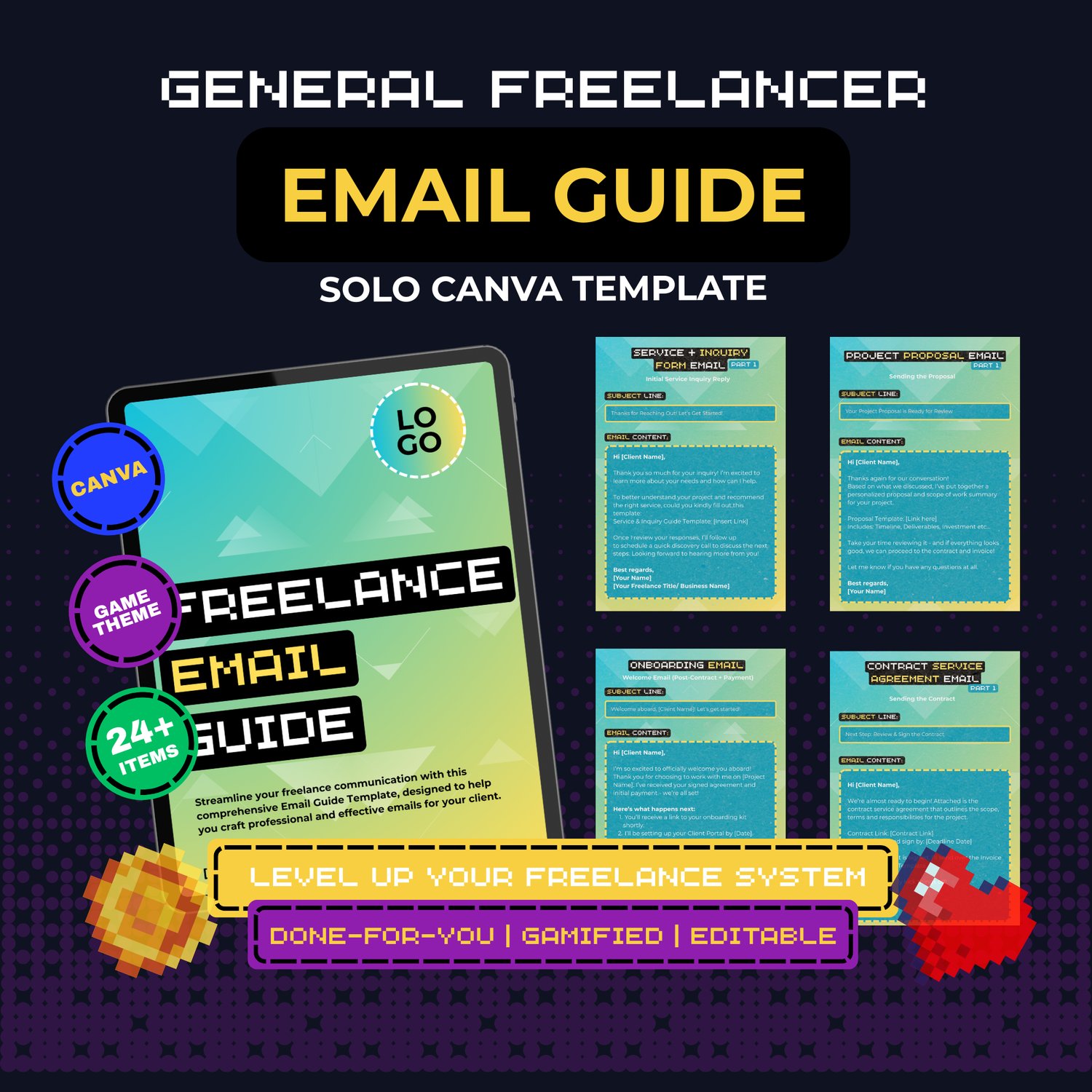 This template includes done-for-you email guides you can customize for any freelance niche: