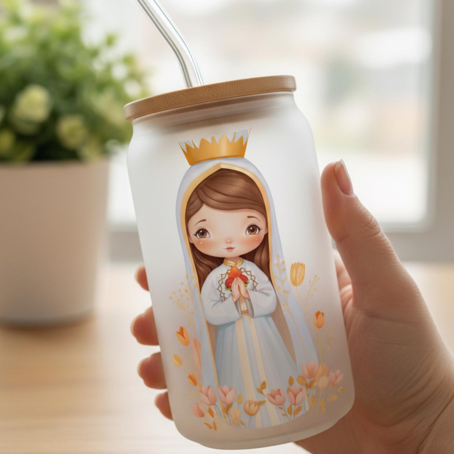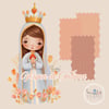 Celebra la aparición de la Virgen María con esta hermosa ilustración estilo "santito" de la Virgen de Fátima. Con su corazón inmaculado y rodeada de flores, esta imagen es ideal para infundir ternura y devoción en tus creaciones. ¡Perfecta para eventos especiales!
