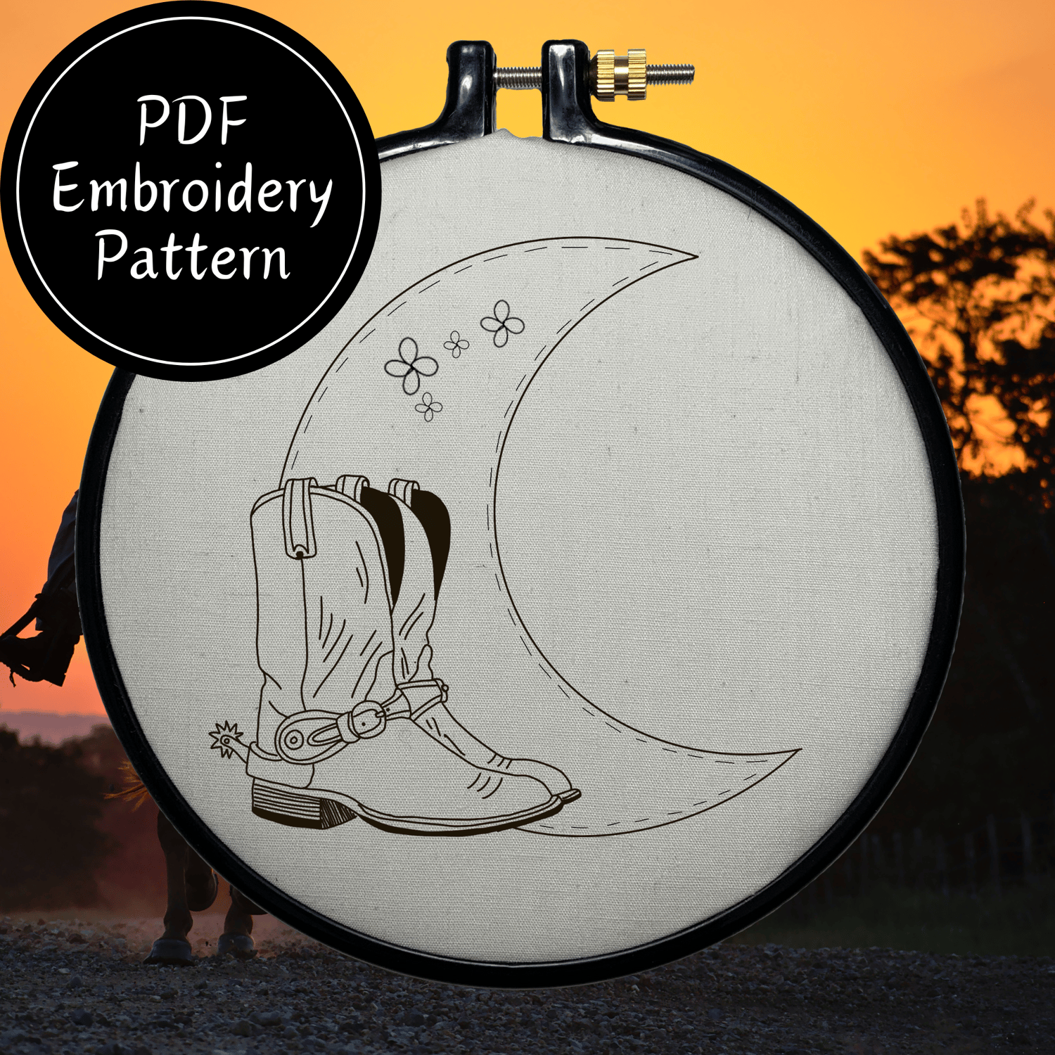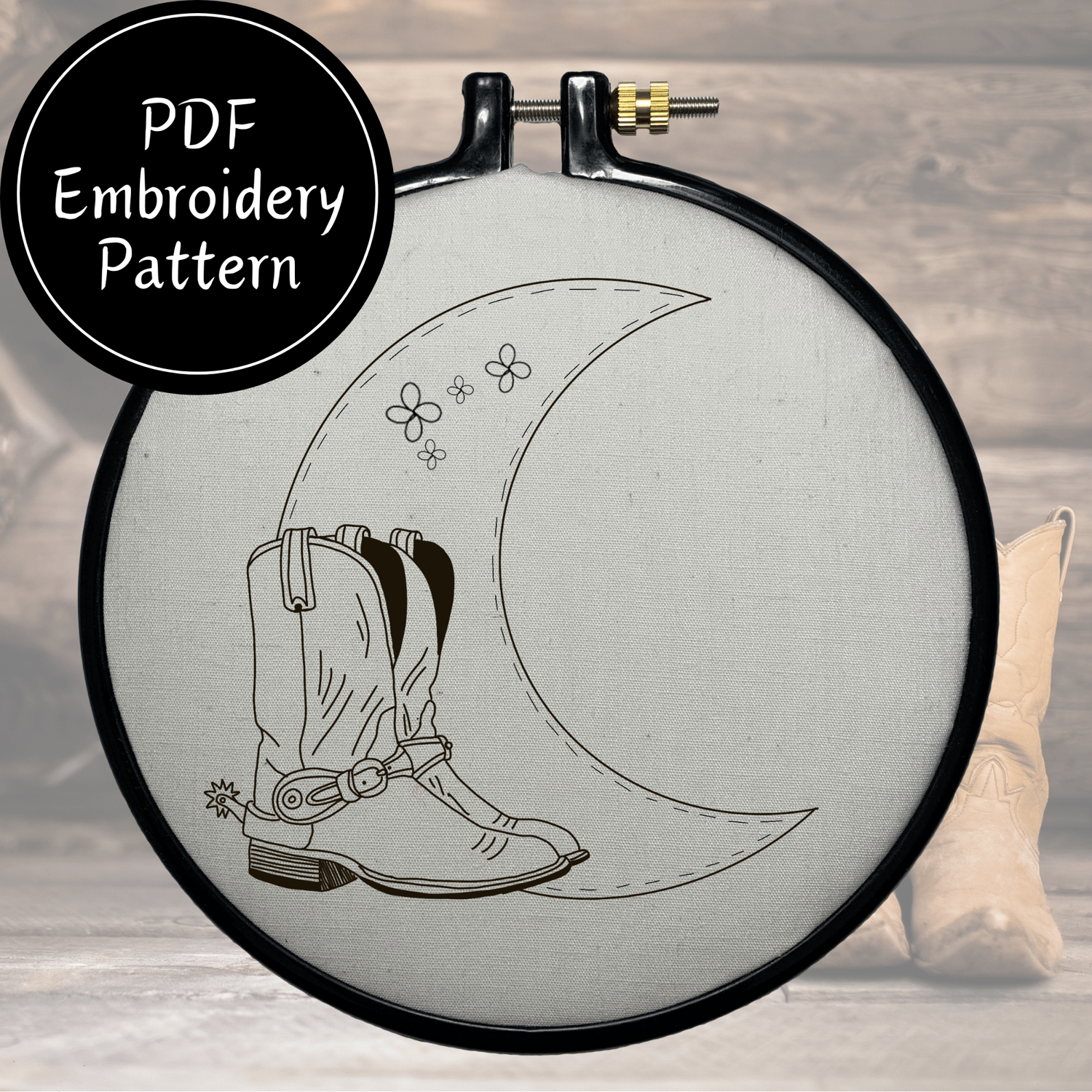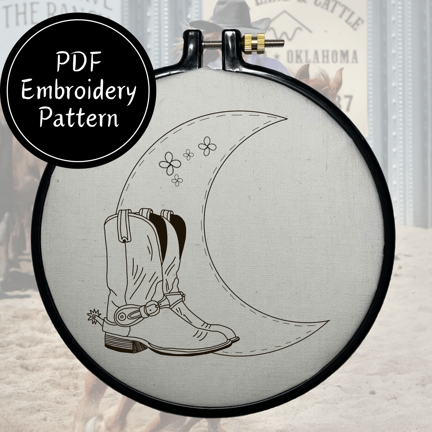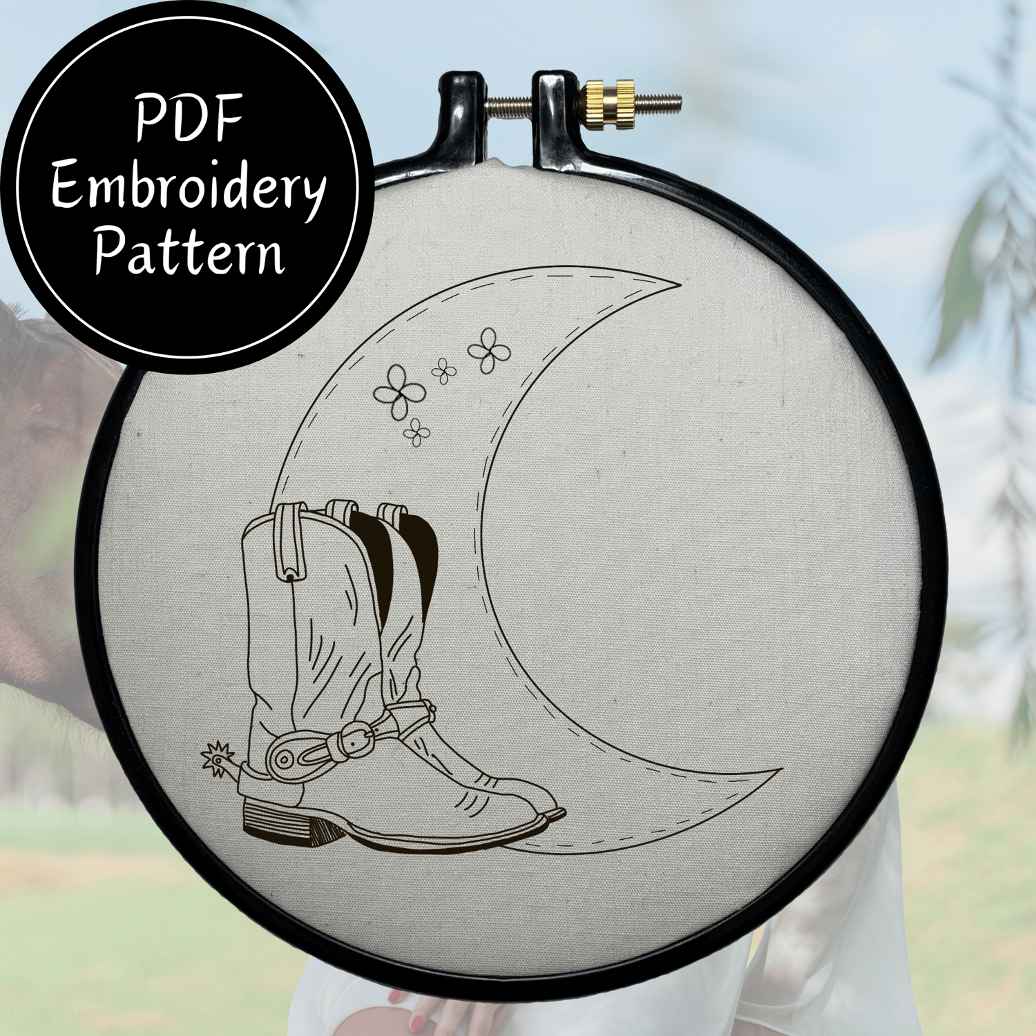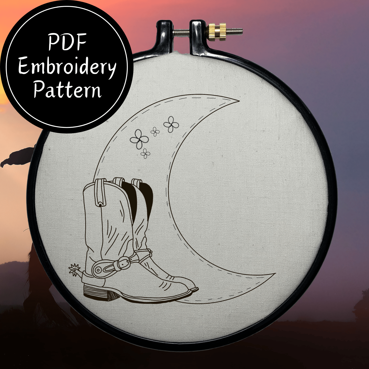 Cowboy Moon Hand Embroidery Pattern DIY Embroidery